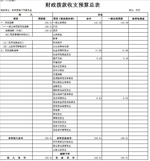2018年財政撥款支出168.51萬元,其中,一般公共服務支出143.46萬元,醫療衛生支出5.45萬元;住房保障支出8.62萬元。比上年減少4.64萬元,減少2.7%。主要原因為單位加強經費支出管理等原因。
