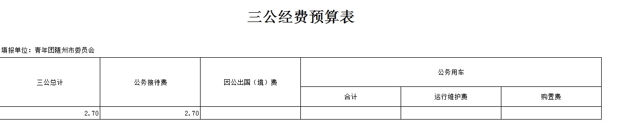 201年本部門財政撥款安排三公經費支出預算2.7元。2018年團市委“三公”經費支出預算2.7元,上年“三公”經費預算0萬元,比上年增加27%,其中: