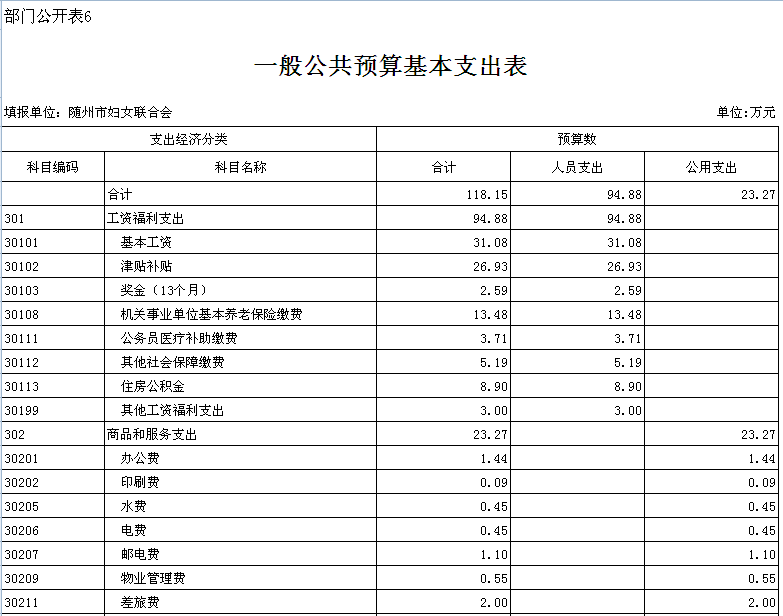第三部分 隨州市婦女聯合會2019年部門預算表