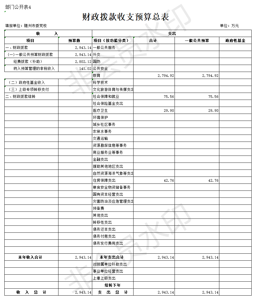 財政撥款支出預算數為2943.14萬元,較上年預算安排增加了274.59萬元,增長了10.29%,主要原因是新增了一個項目經費“新校園后勤服務外包費”。