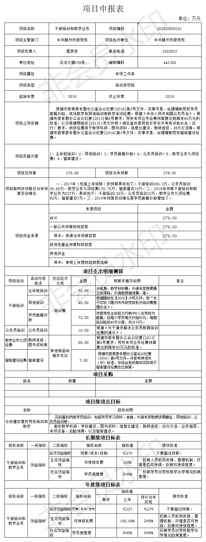 (一)為了黨校更好的教學辦學,開展培訓,保障辦公,設置項目績效目標。