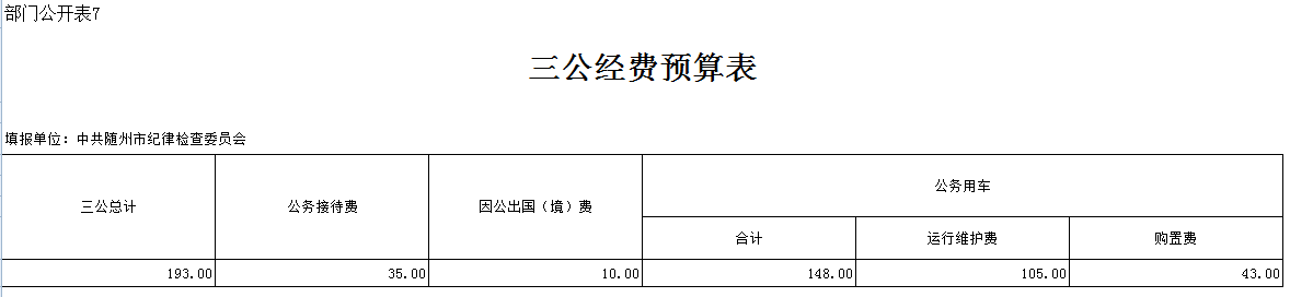 委機關:2019年隨州市紀委監委“三公”經費年初總預算193萬元,比上年增加60萬元,同比增加45.11%,主要原因是監察體制改革,業務范圍拓寬,現有車輛使用年限長、里程大,需要更換維修部分車輛。其中: