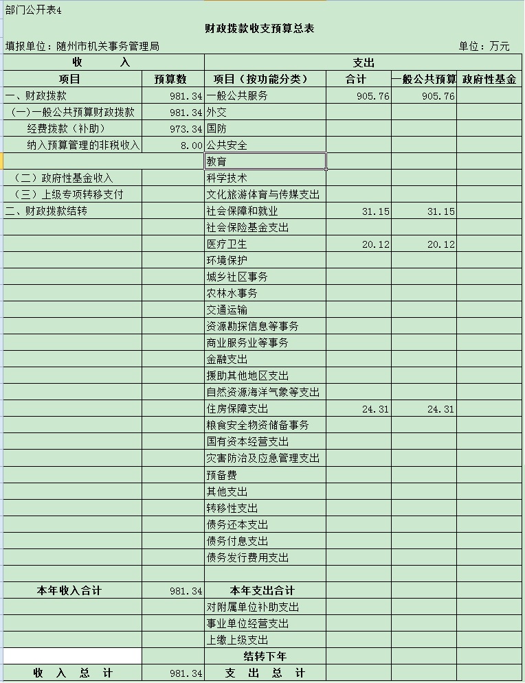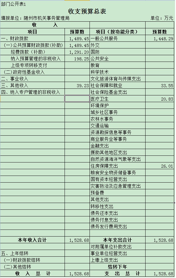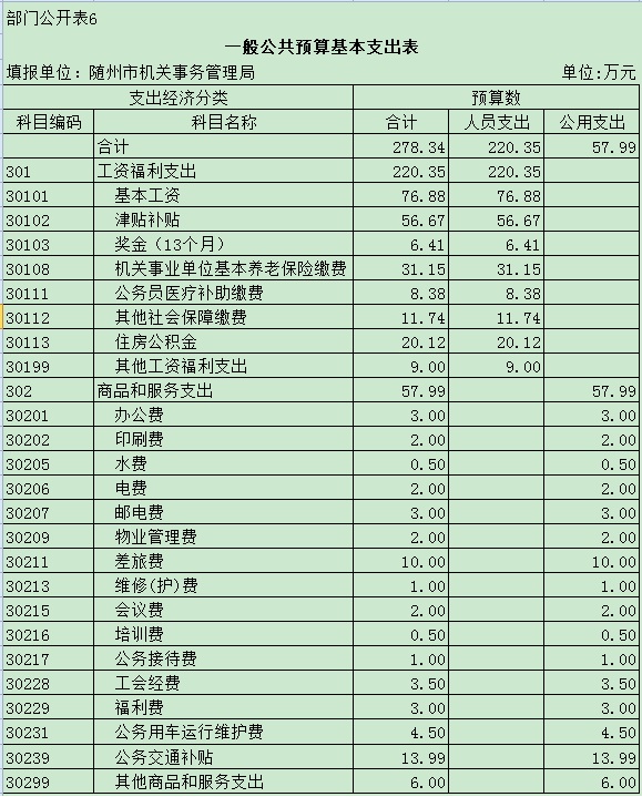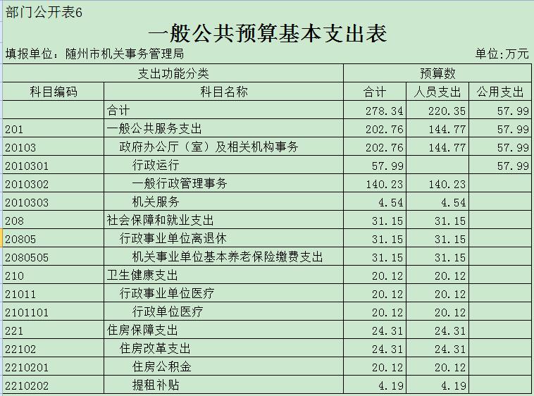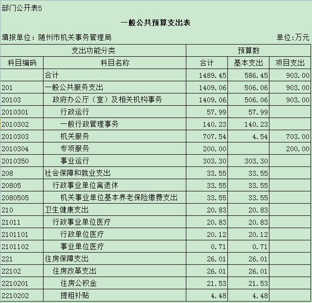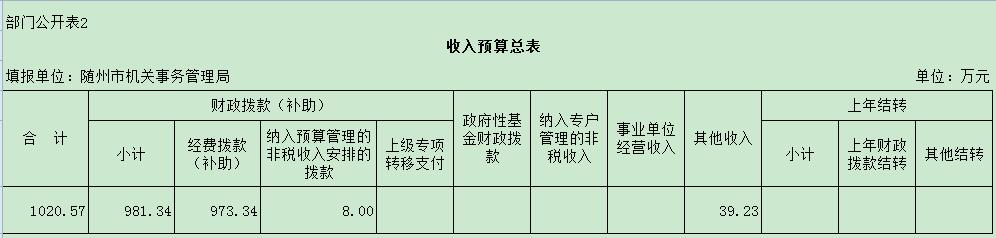 第三部分 隨州市機關事務管理局2019年部門預算表