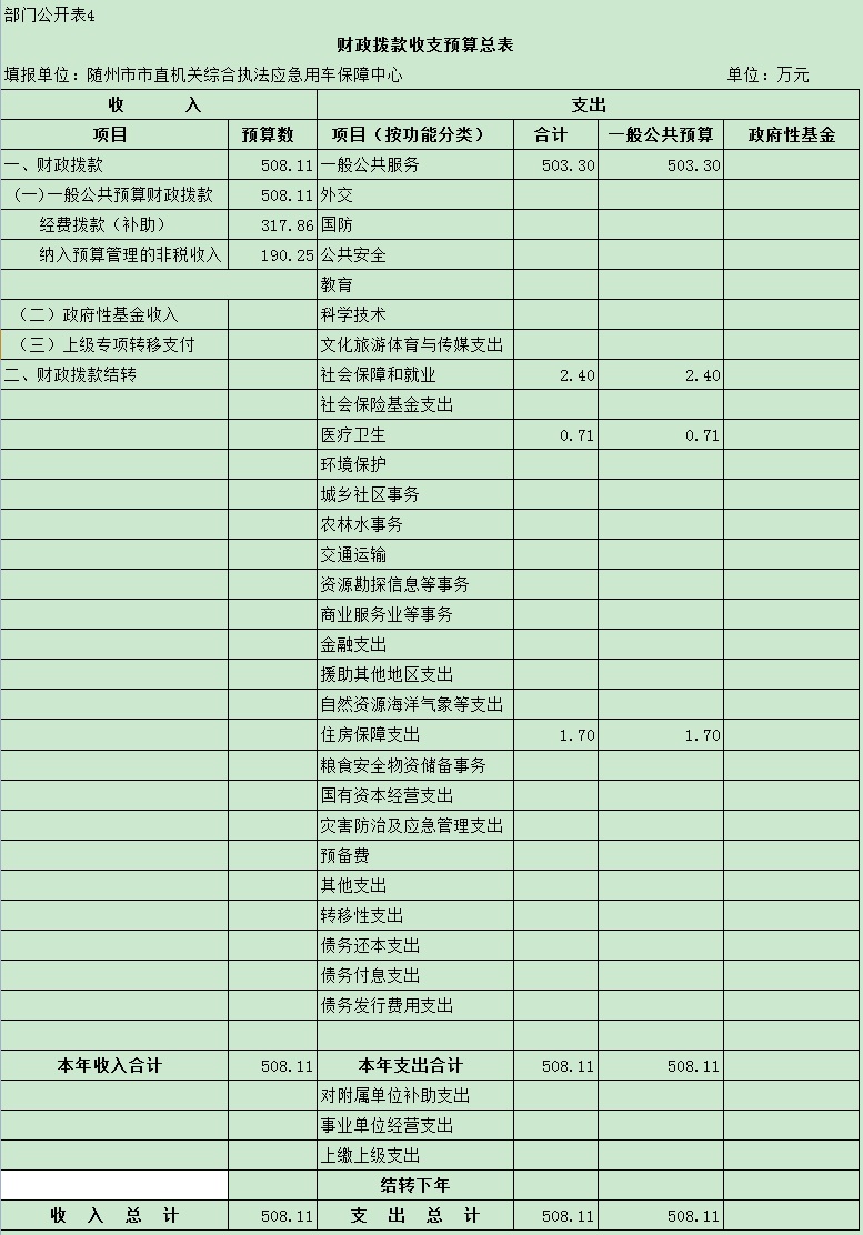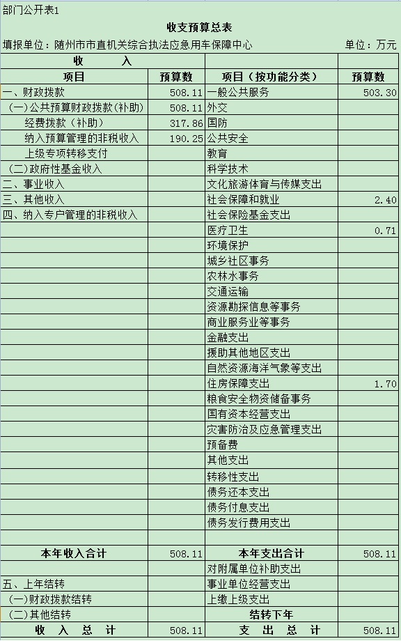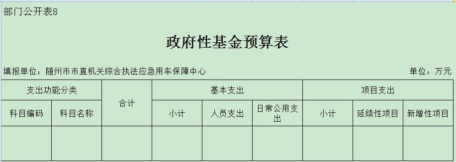 三、市直機關綜合執法應急用車保障中心2019年部門預算公開表
