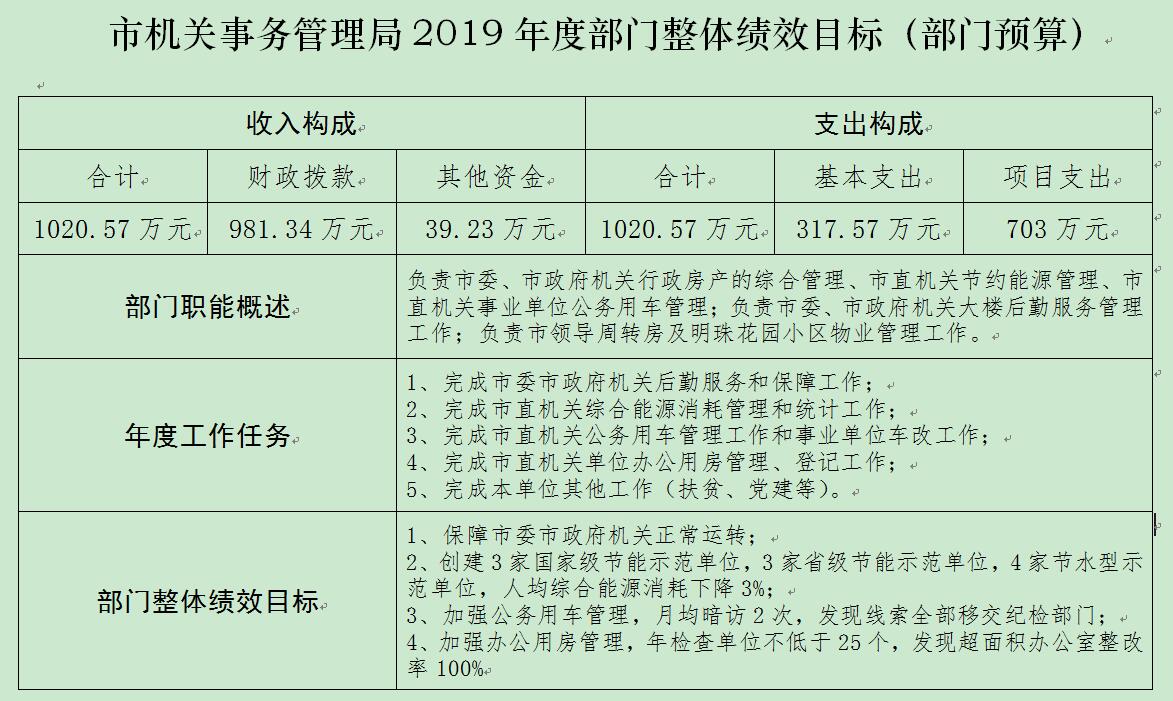 (1)保障市委市政府機關正常運轉:市委市政府辦公樓物業管理工作(衛生保潔、設備維護保養、小型維修)、基本建設、生活服務等工作,每半年綜合考核。