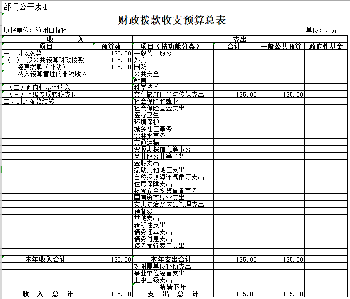 2019年隨州日報社收入預算總額為1573.35萬元,比上年減少76.84萬元,下降4.7%,其中財政撥款135萬元與去年相同,事業單位經營收入1438.35萬元比去年減少76.84萬元。減少主要原因為附屬子公司經營狀況受限,上交任務款延后。
