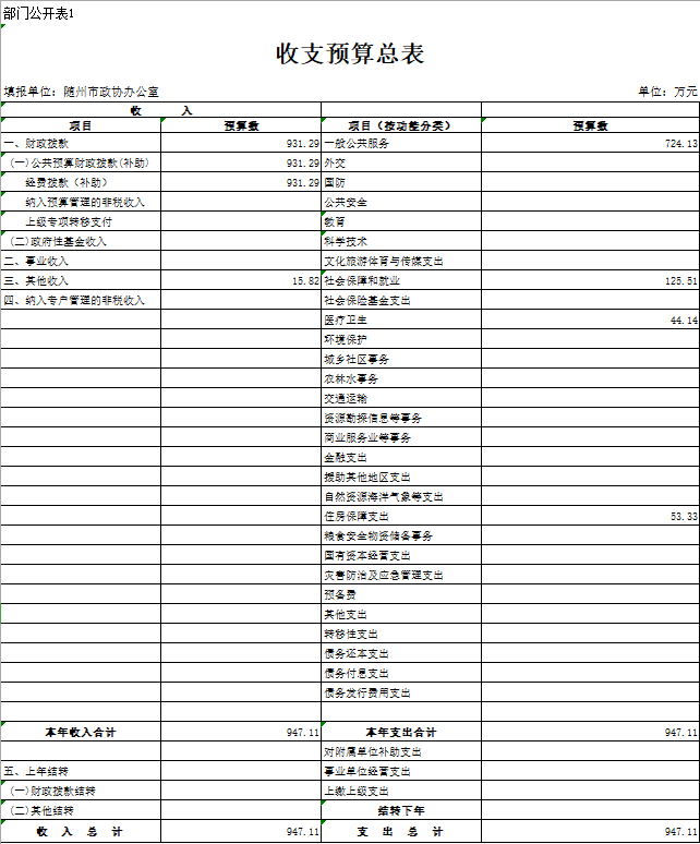 2019年財政預算安排支出947.11萬元,總體比上年減少11.59萬元,減少1.2%,主要原因是人員減少,基本支出減少。