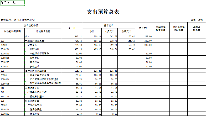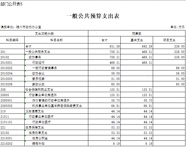 住房公積金(2210201):反映市政協機關公積金經費支出。