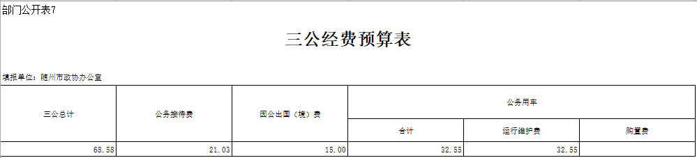 2019年市政協辦公室“三公”經費預算68.58萬元,比上年增加18.92萬元,增加38.1%,原因是2018年未從公用經費中安排公車運行維護經費。其中: