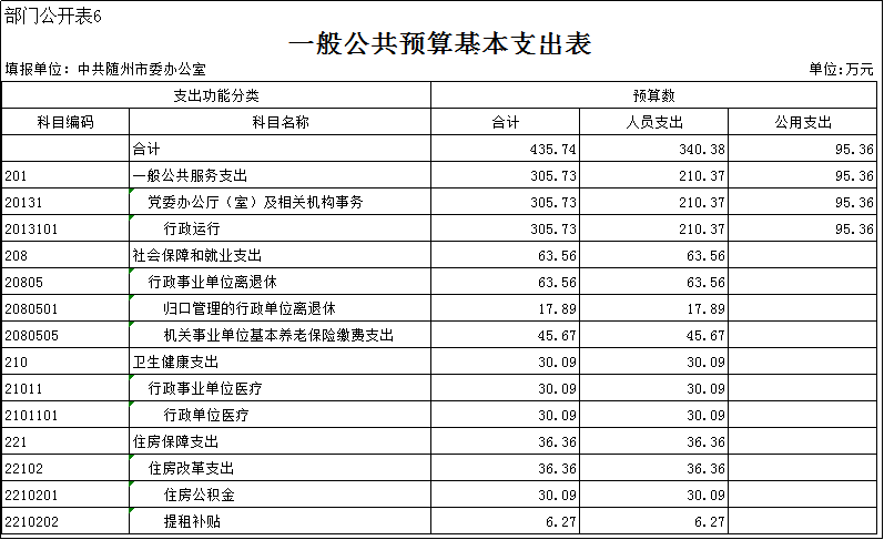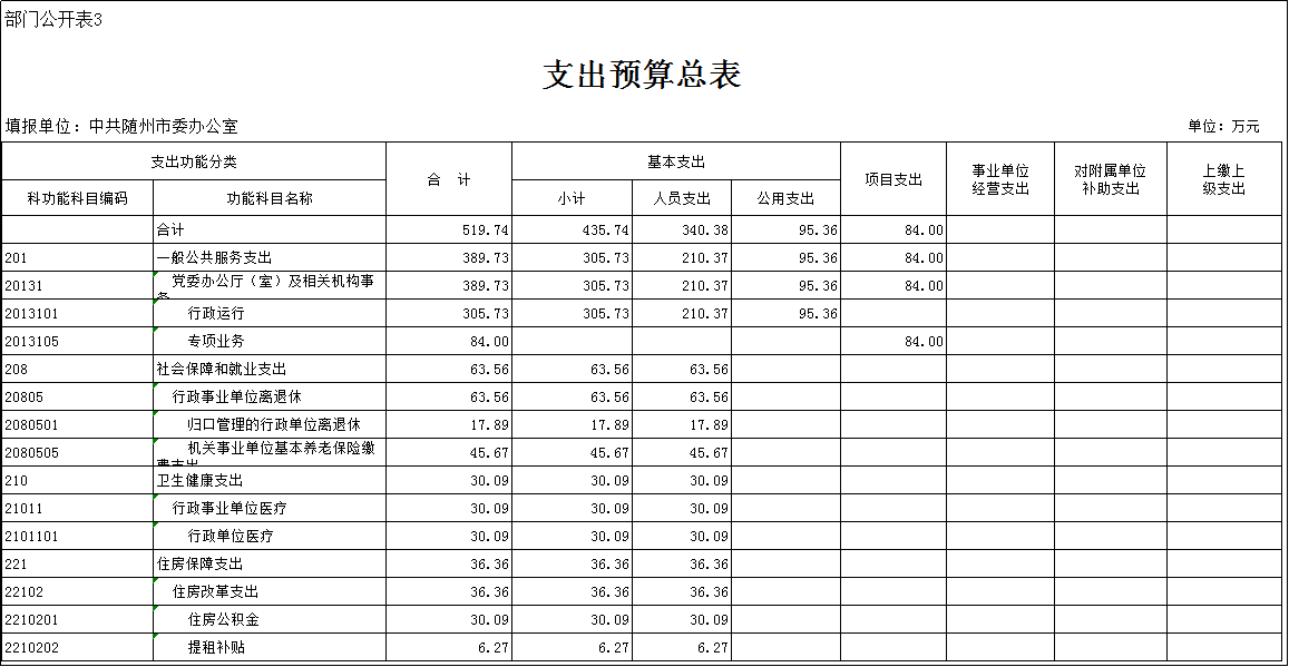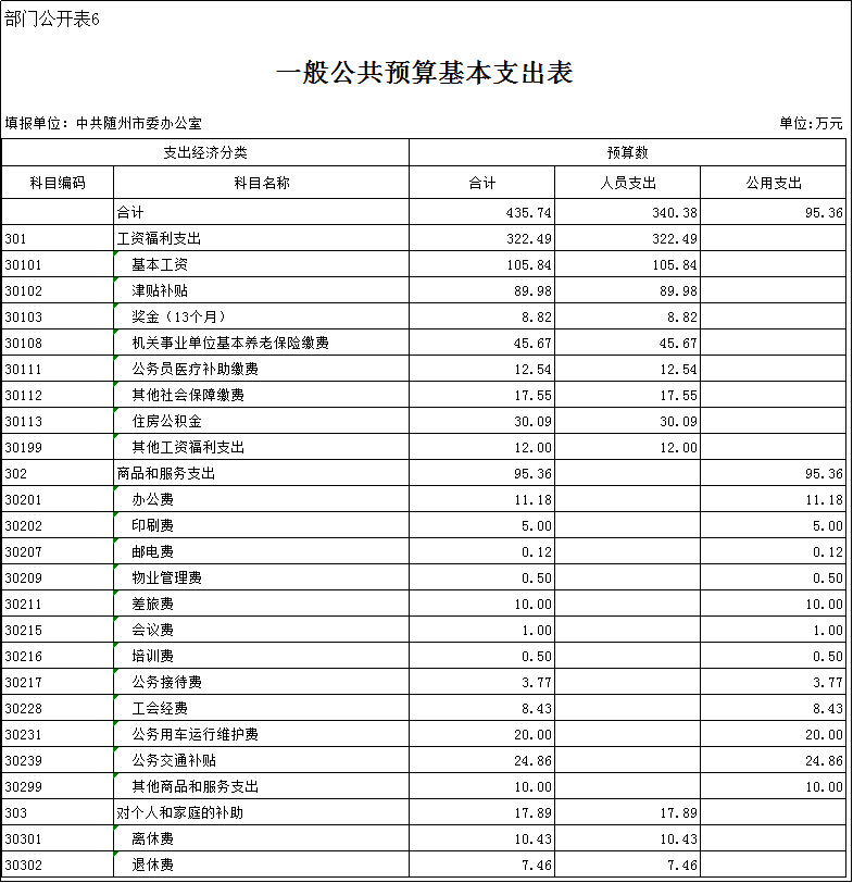 第三部分 ?中共隨州市委辦公室2019年部門預(yù)算表