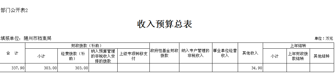隨州市檔案局2019年部門預算