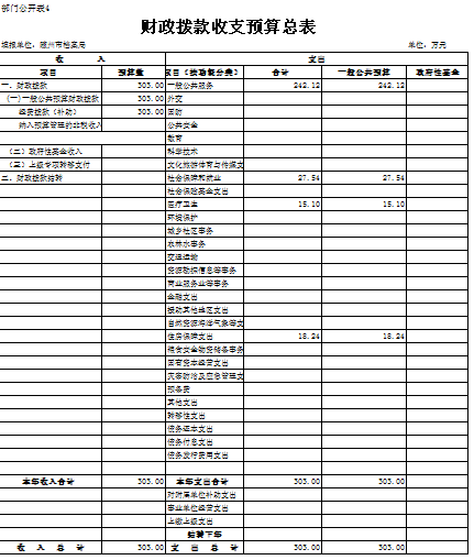四、財政撥款收支總表