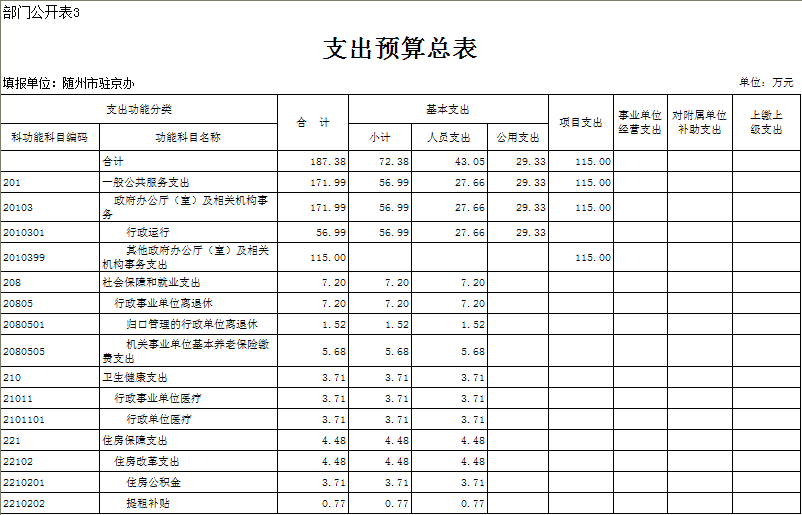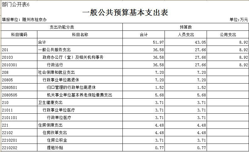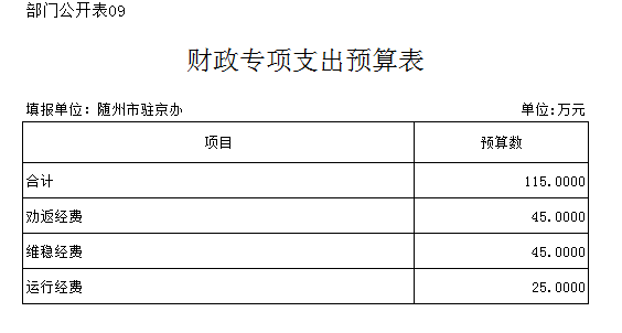 第三部分隨州市人民政府駐北京辦事處2019年部門預(yù)算表