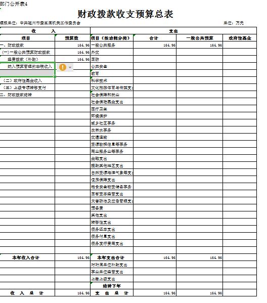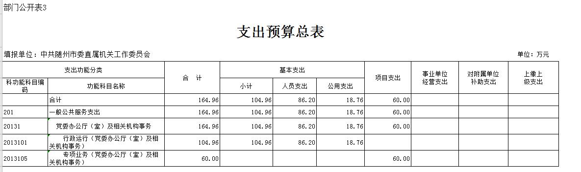 中共隨州市委直屬機關工作委員會預計財政撥款支出164.96萬元。新成立單位,無上年對比。