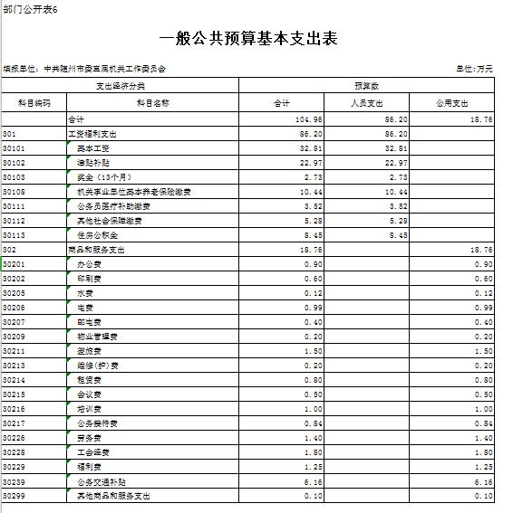 第三部分 中共隨州市委直屬機關工作委員會2020年部門預算表