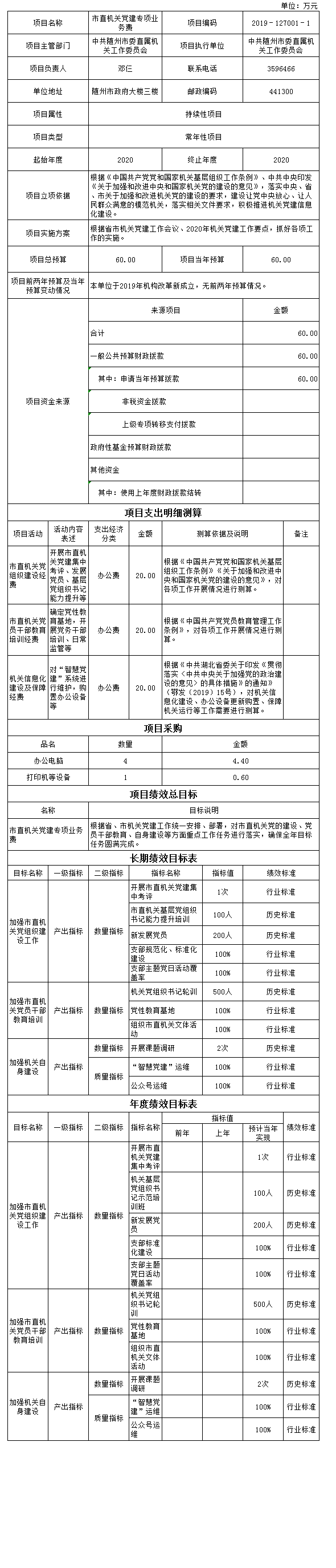 本年中共隨州市委直屬機關工作委員會無重點項目績效目標。