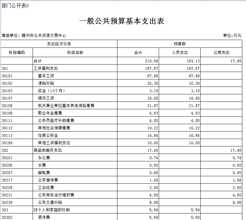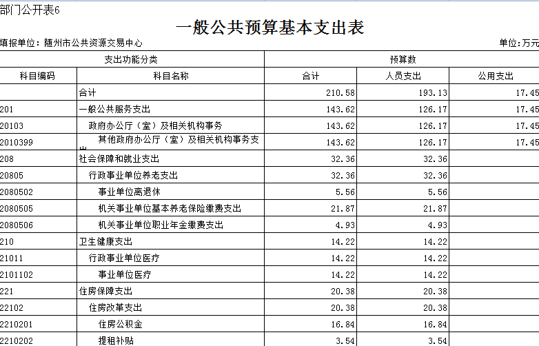 第三部分????隨州市公共資源交易中心2020年部門預算表
