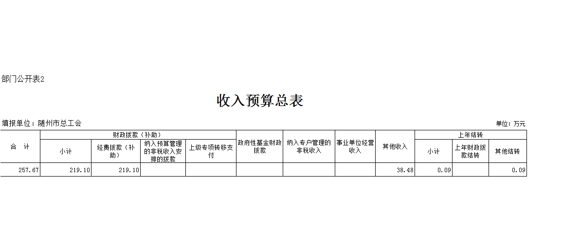 本年收入預算總額257.67萬元,其中:財政撥款(補助)219.10萬元、其他收入38.48萬元、上年結轉0.09萬元。較上年預算安排增加了32.46萬元,比上年預算安排增加了14.41%,主要原因為增加了財政撥款的基本支出人員經費。