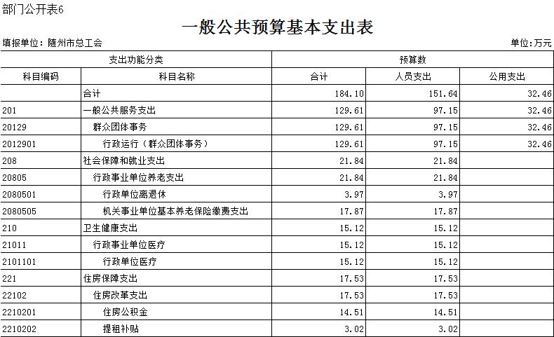 一般公共服務支出(類)群眾團體事務(款)行政運行(群眾團體事務)(項):反映行政單位(包括實行公務員管理的事業單位)的基本支出。