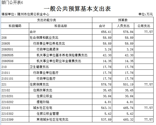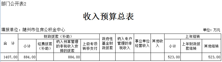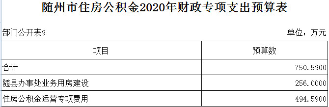 第三部分 隨州市住房公積金中心2020年部門預算表