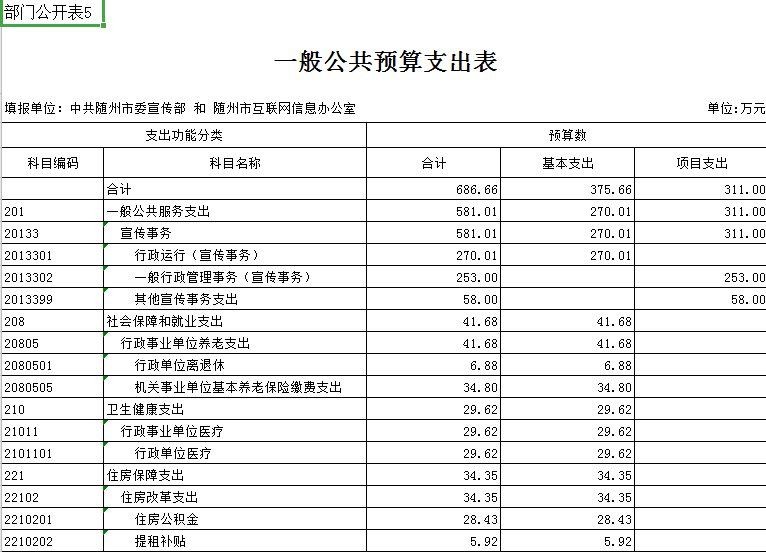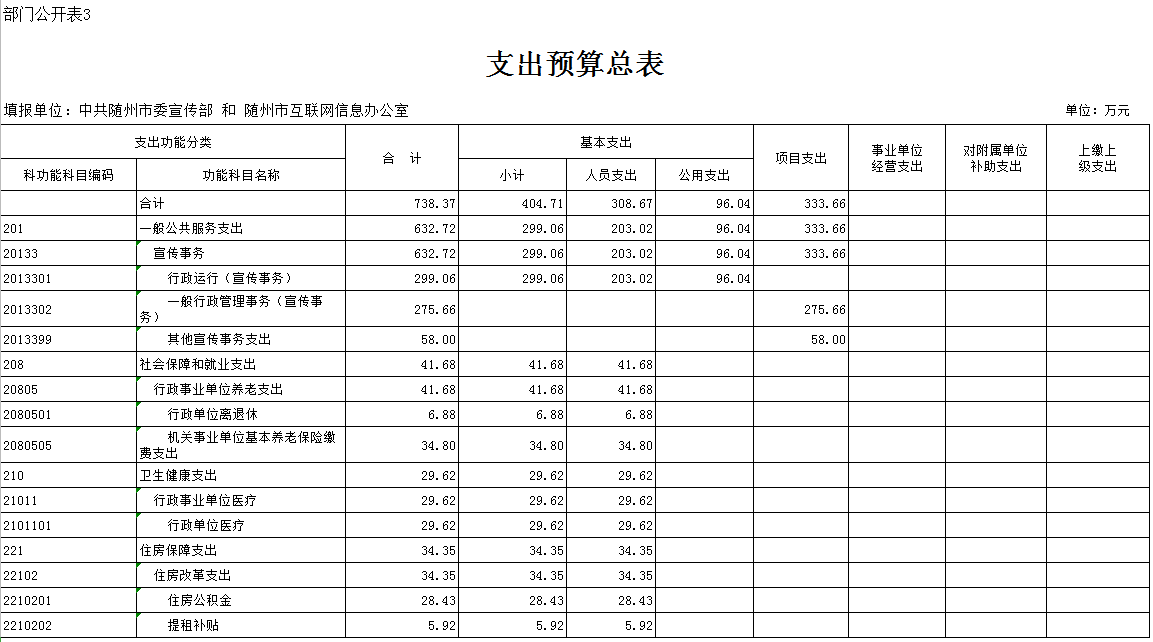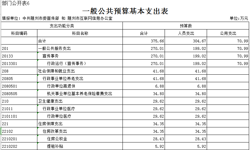 6.行政運行:反映用于宣傳部門保障機構正常運行的經費。
