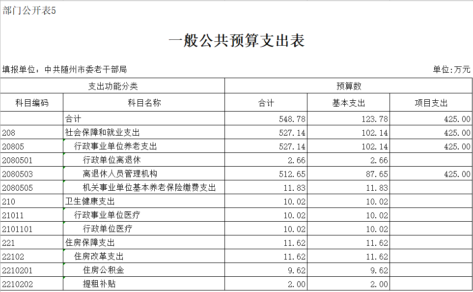 ??第三部分??中共隨州市委老干部局2020年部門預算表