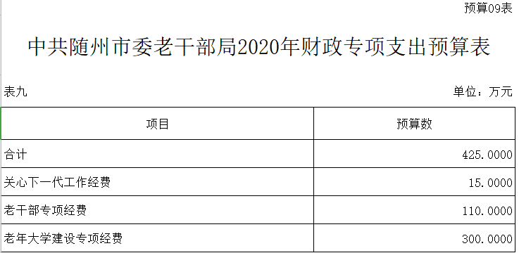 第三部分 中共隨州市委老干部局2020年部門預算表