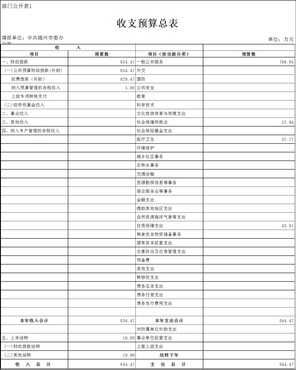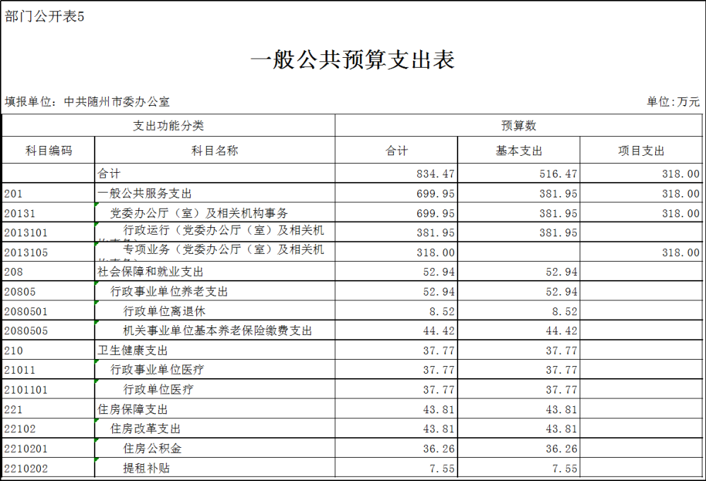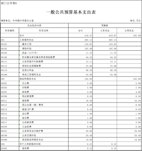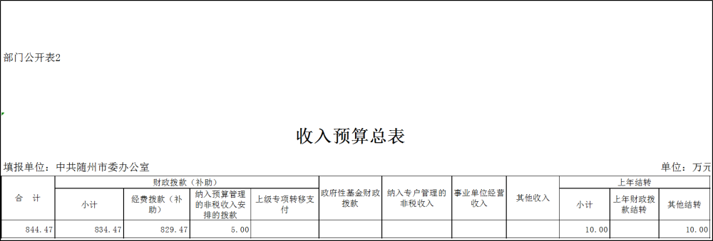 第三部分 中共隨州市委辦公室2020年部門預算表