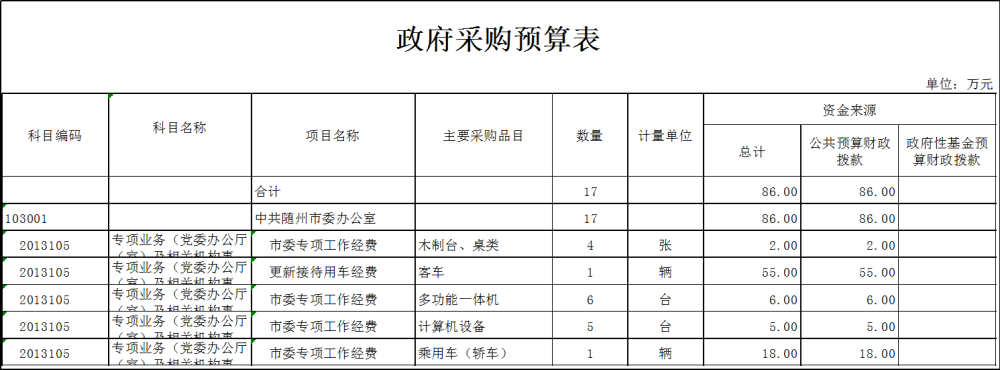 2020年我辦將按照市內網辦的要求,預計采購國產電腦5臺金額5萬元,打印機6臺金額6萬元,辦公桌椅4套2萬元,更新應急公務用車及接待客車各一輛金額73萬元,合計總金額86萬元,較上年增加30.5萬元,增加55%,增加的主要是更新一輛接待用客車。本年無政府購買服務預算。