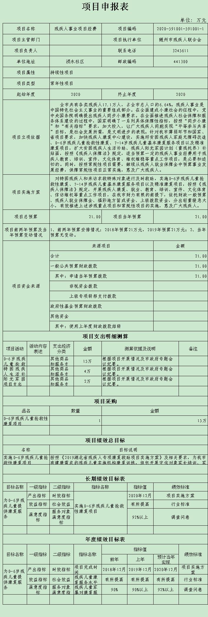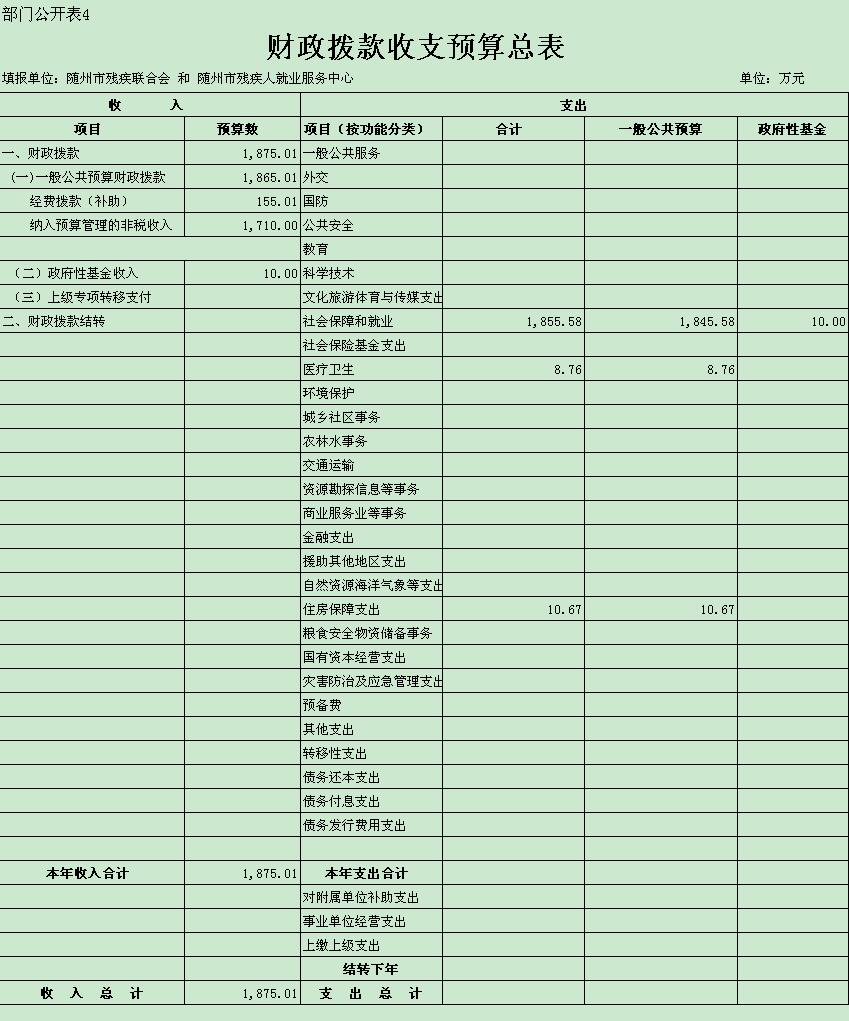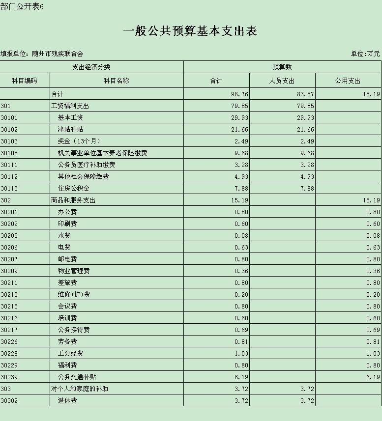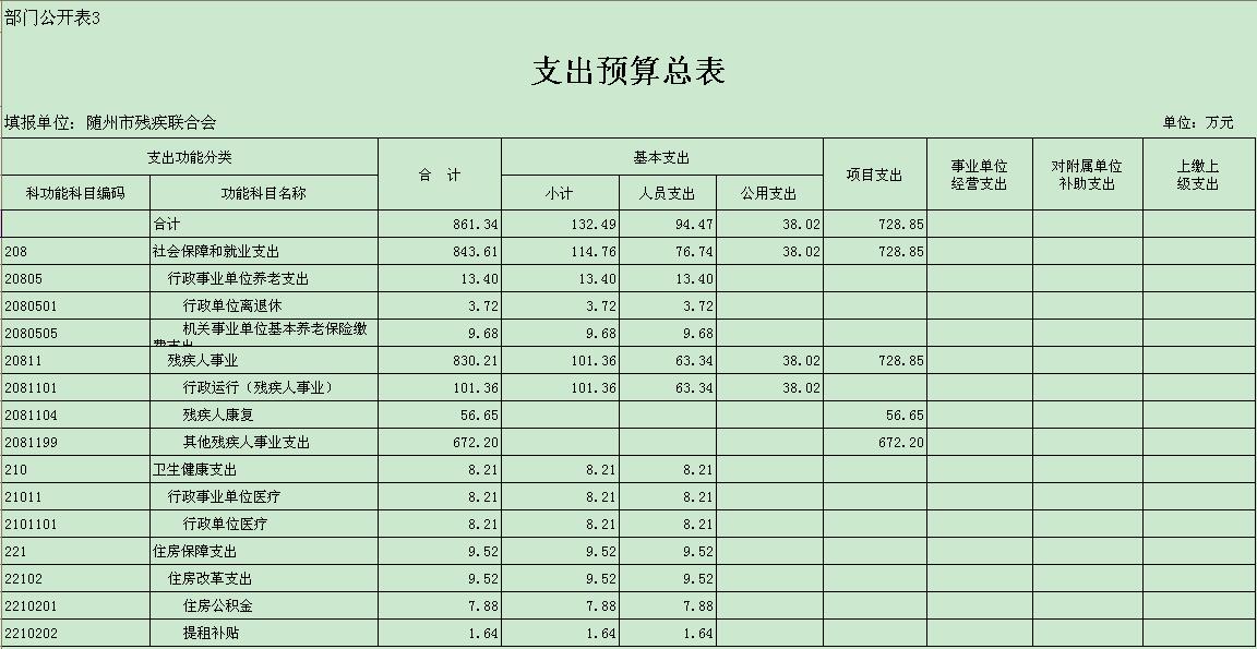 1、隨州市殘疾人聯(lián)合會機關(guān)預(yù)算公開表