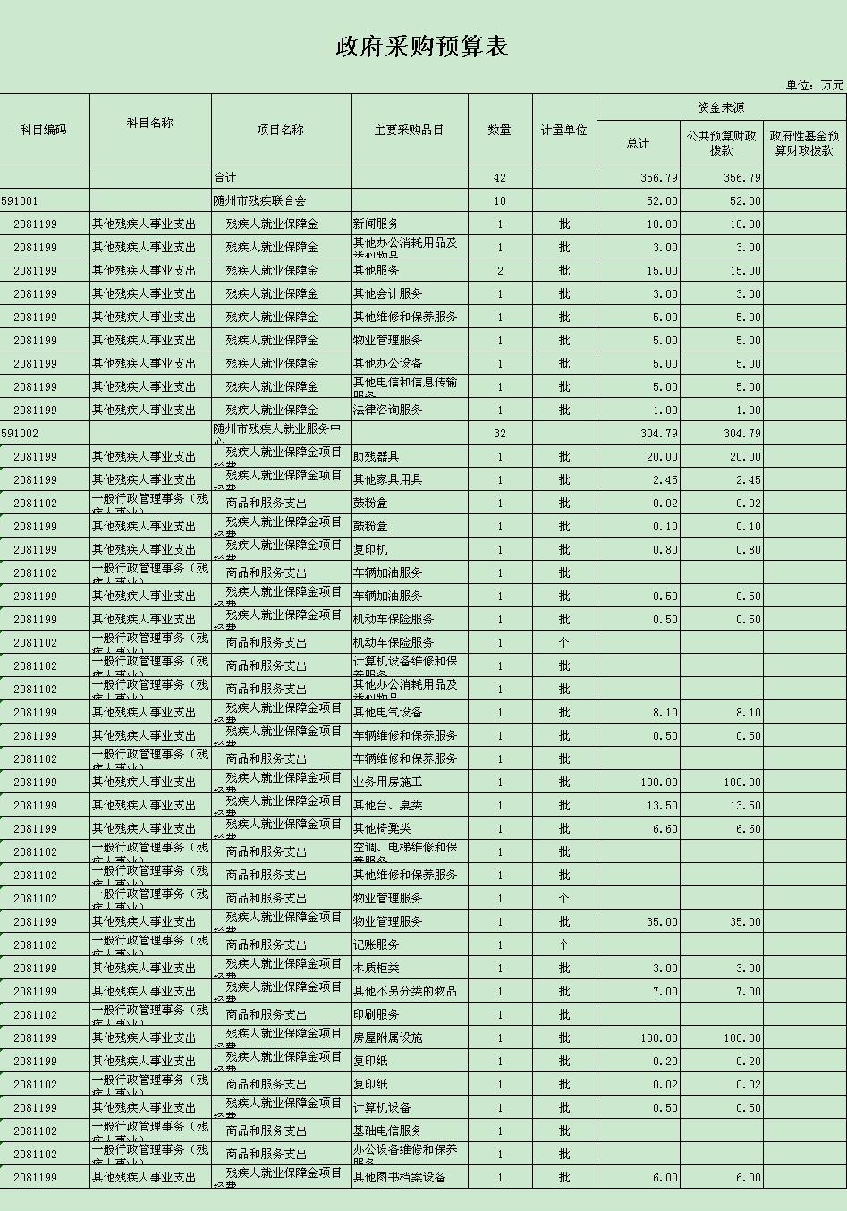 (一)隨州市殘聯(lián)(含隨州市殘疾人就業(yè)服務(wù)中心)匯總