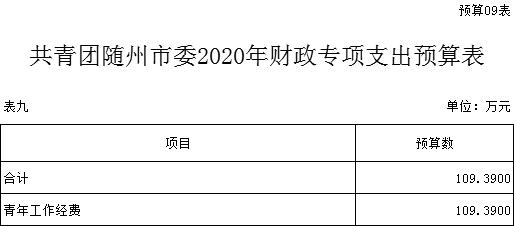 第三部分 共青團(tuán)隨州市委2020年部門預(yù)算表