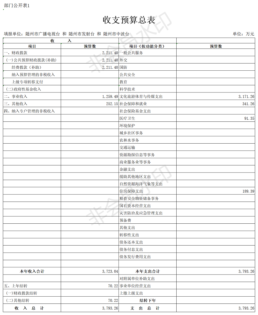 隨州廣播電視臺2020年部門預算