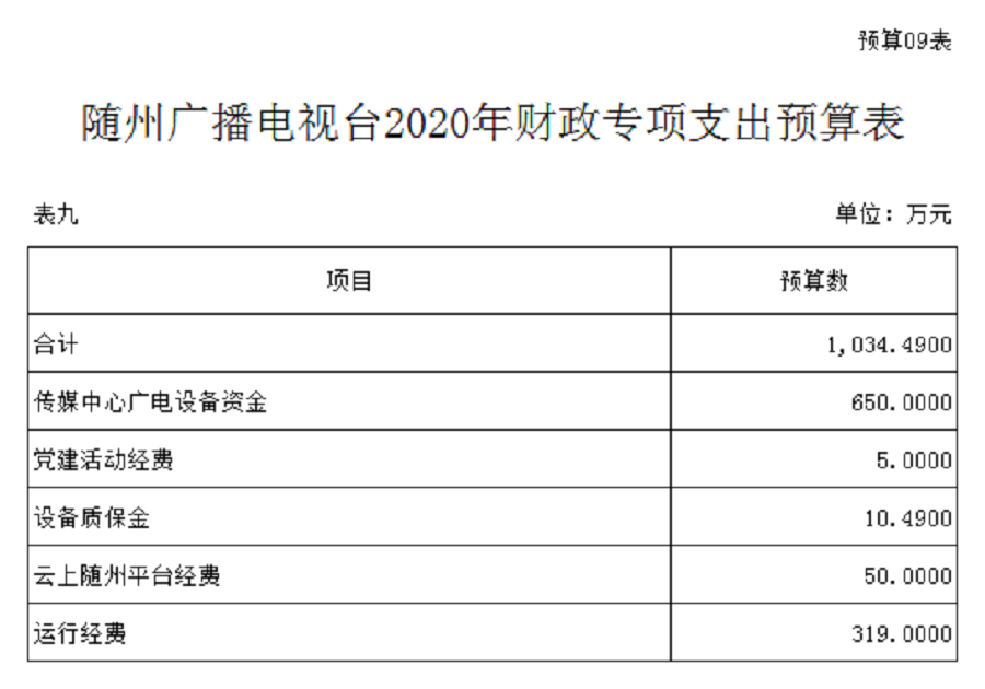 第三部分 隨州廣播電視臺2020年部門預算表