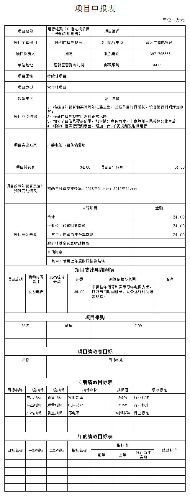 廣播電視節目傳輸傳輸覆蓋設備(電費)34萬元,用于保證廣播電視傳輸設備(電費)正常運行。為加大隨州宣傳力度,豐富隨州人民美好文化生活,我們加大節目信號覆蓋范圍,實現綜合廣播雙頻覆蓋,并有效地保證了優質安全播出。根據行業標準,質量指標設定為: 設備功率≥90%,電壓波動±15V,停電率15小時/年。