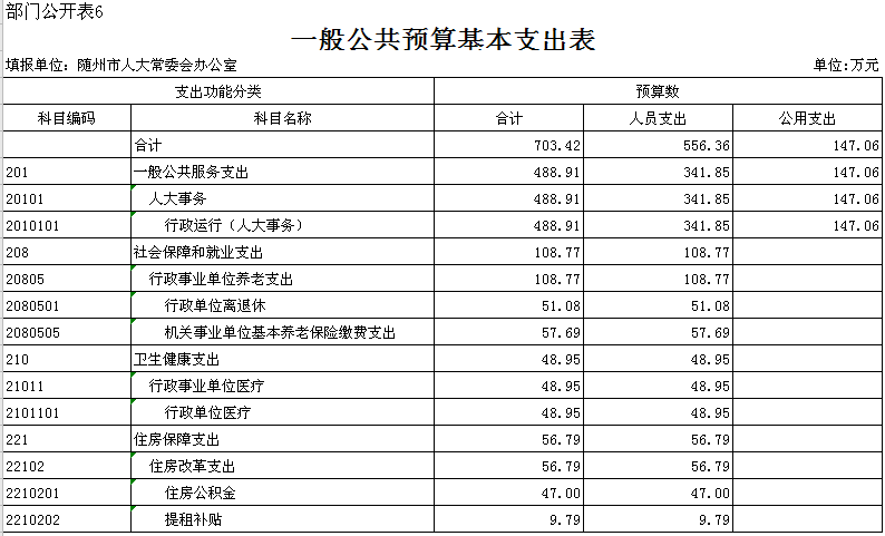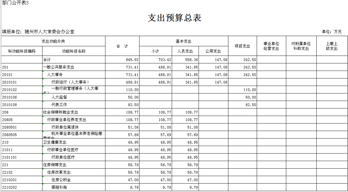 住房公積金(2210201):反映市人大機關公積金經費支出。
