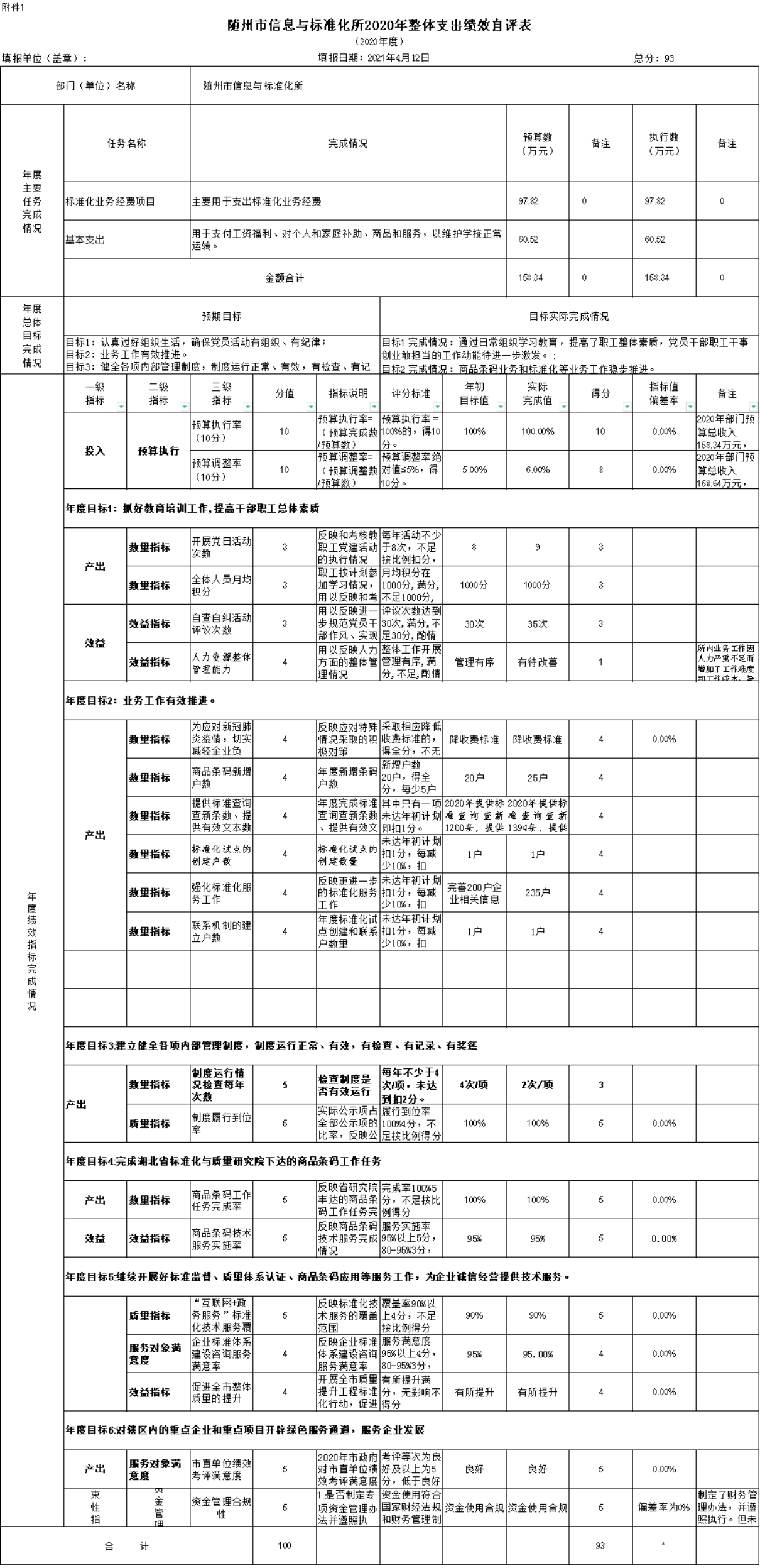 附件:2020年度隨州市信息與標(biāo)準(zhǔn)化所整體績(jī)效自評(píng)