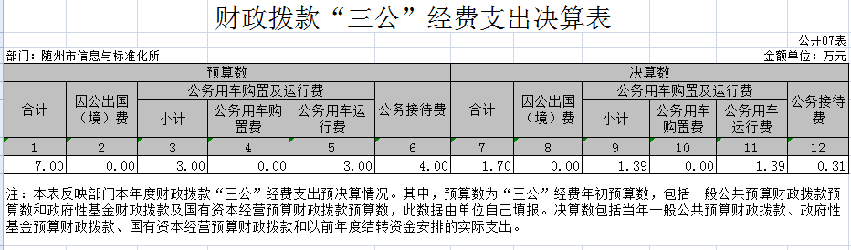 七、財(cái)政撥款“三公”經(jīng)費(fèi)支出決算表