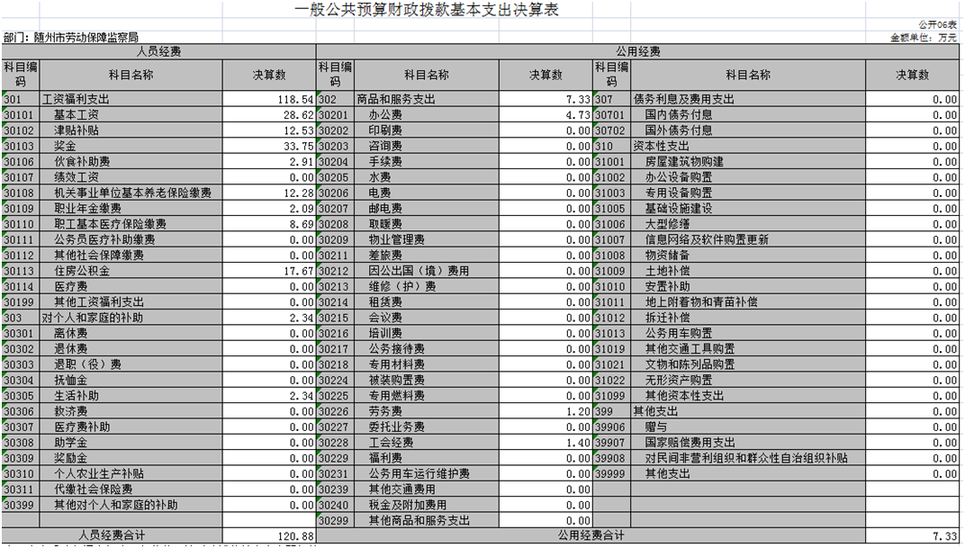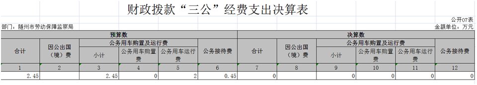 第三部分 隨州市勞動保障監察局2020年部門決算表