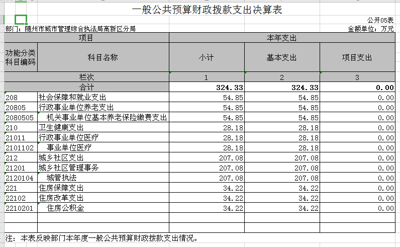五、一般公共預(yù)算財(cái)政撥款支出決算表(公開(kāi)表05表)