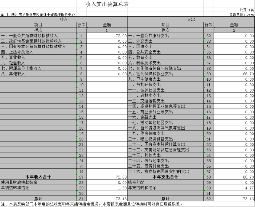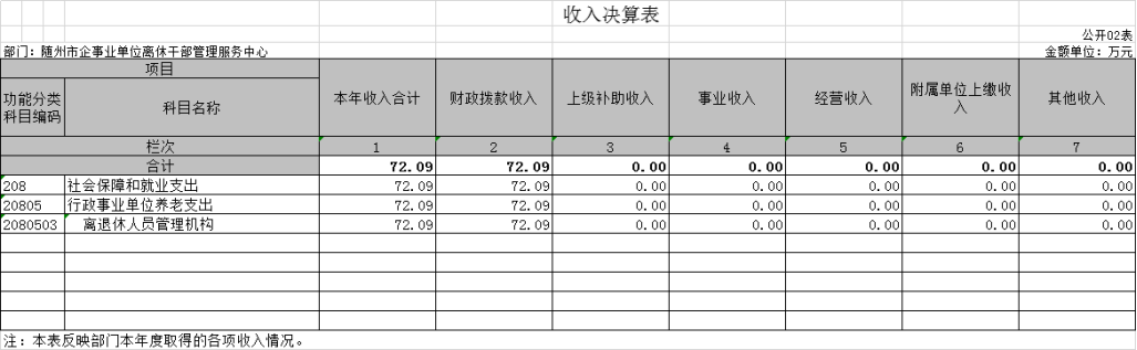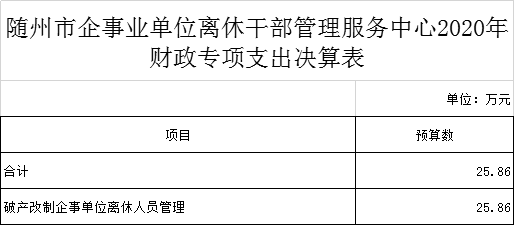 ?三、隨州市企事業單位離休干部管理服務中心2020年部門決算表