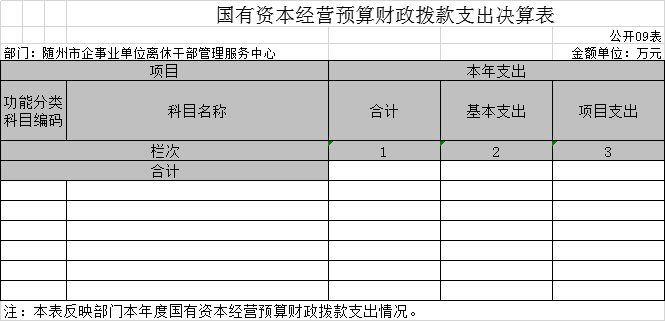 九、國有資本經營預算財政撥款收入支出決算表(公開表09表)