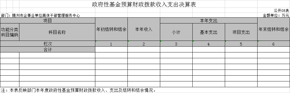單位名稱 | 隨州市企事業單位離休干部管理服務中心 | |||||||||