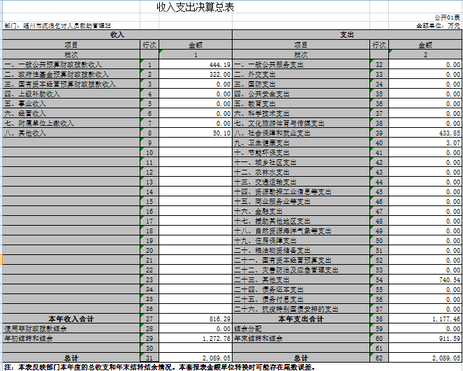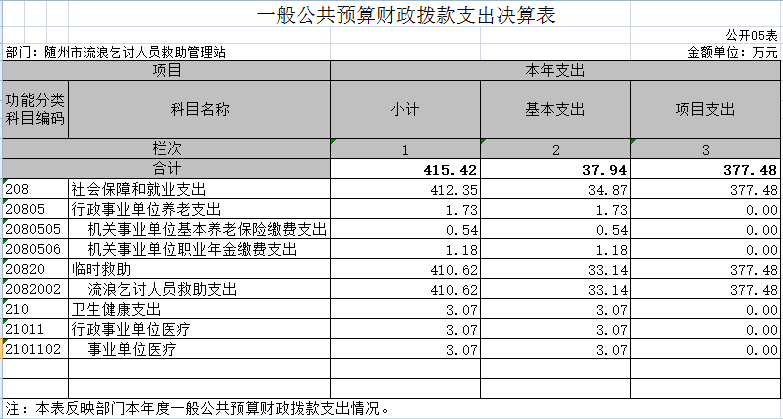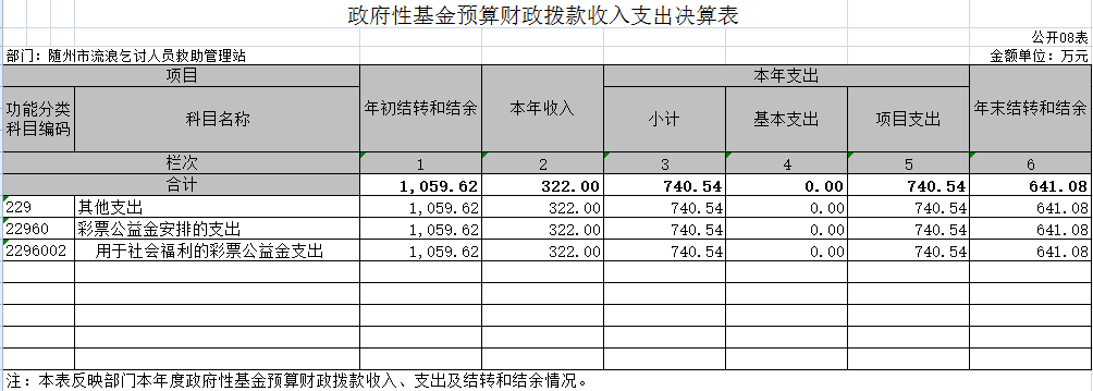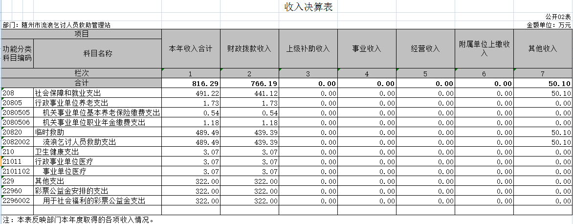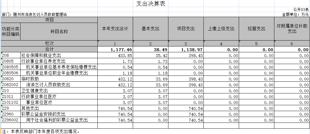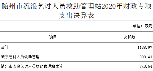 隨州市流浪乞討人員救助管理站2020年度決算公開
