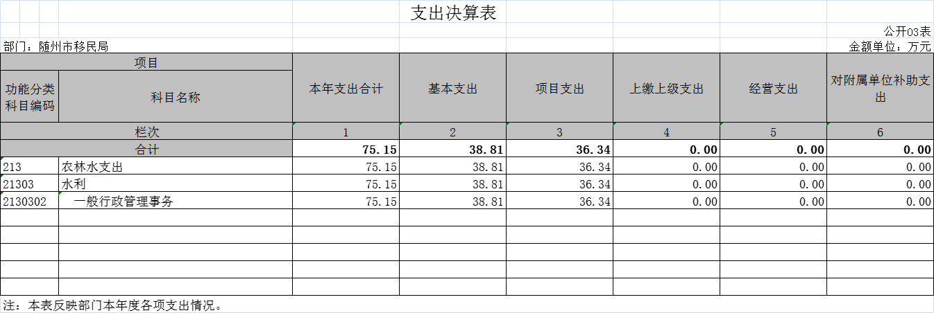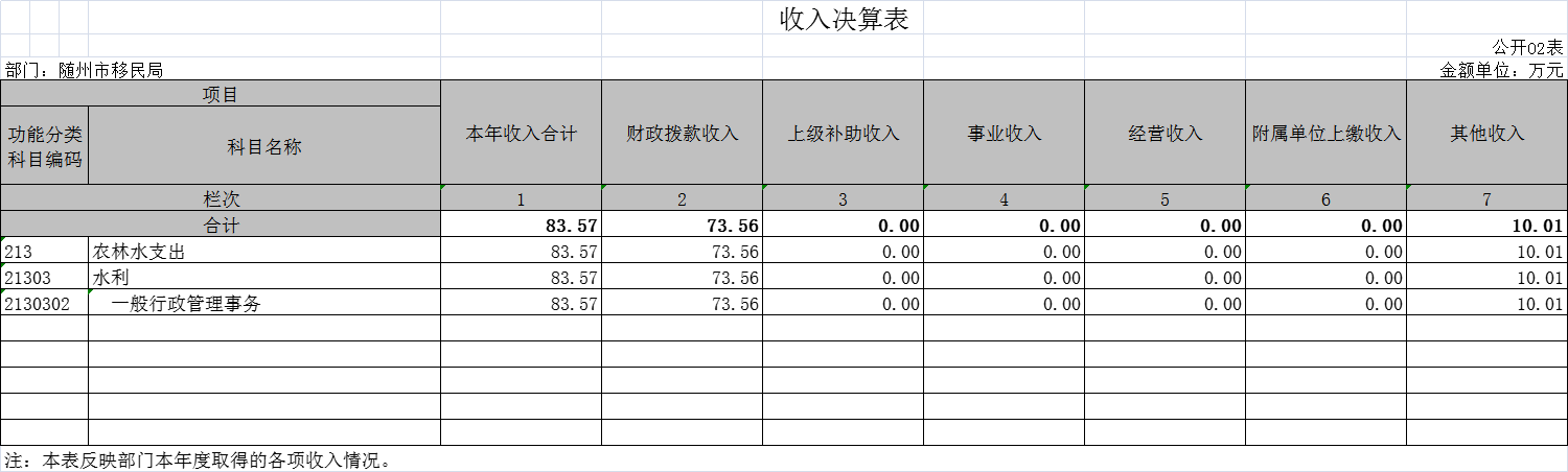 隨州市移民服務中心(原隨州市移民局)2020年部門決算公開