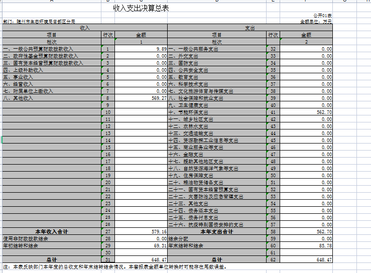 第三部分 ?隨州市生態環境局曾都區分局2020年部門決算表