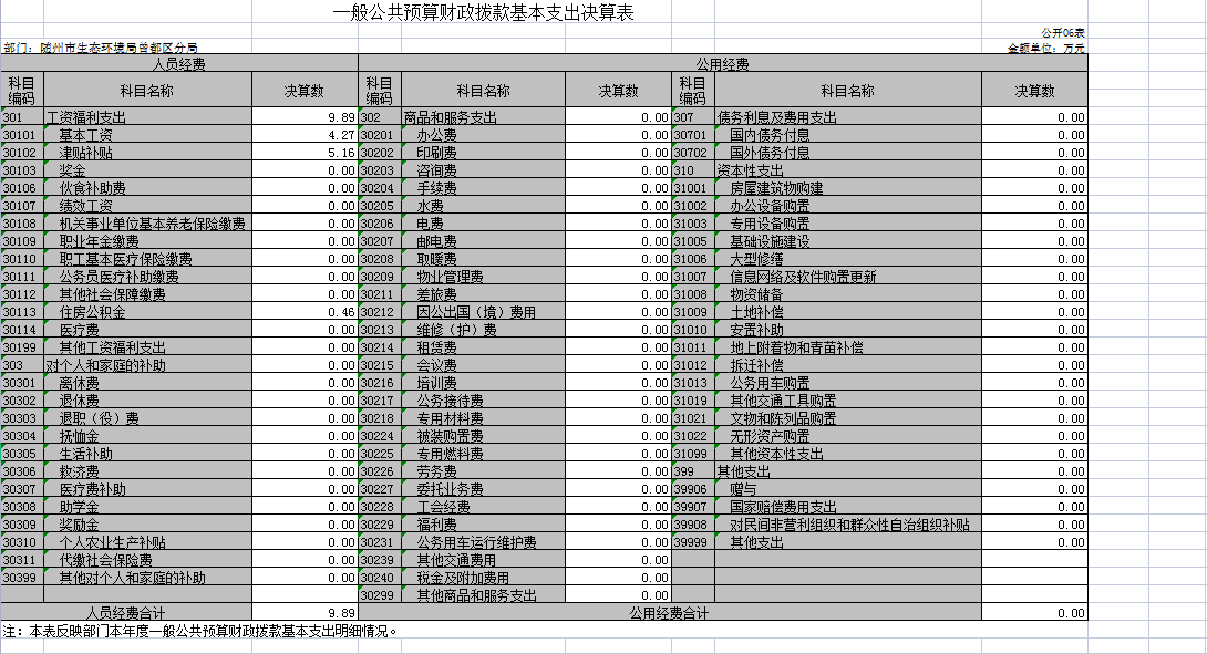 六、一般公共預算財政撥款基本支出決算批復表(公開表06表)