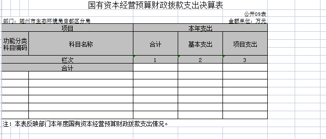 九、國有資金經營預算財政撥款收入支出決算表(公開表09表)