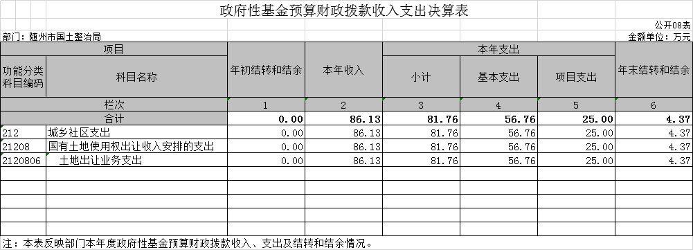 單位名稱 | 隨州市國土整治局 | ||||||||