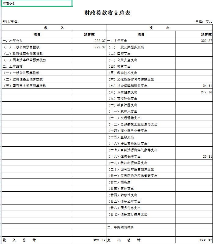 公開表4:財政預算撥款收支預算總表